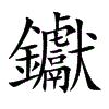 鑣,马勒旁铁。《尔雅·释器》:“鑣謂之钀。”郭璞注:“馬勒旁鐵。”一说此解不确,为误本所致。