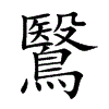 【唐韻】烏雞切【集韻】【韻會】煙奚切,𠀤音翳。水鳥。鷗也。一名水鴞。【說文】鳧屬。【埤雅】鳧好沒,鷖好浮。【正字通】鷖,蒼黑色,羣飛鳴,隨潮往來,曰信鳧,知風起,輒飛至岸,渡海者以爲𠋫。【詩·大雅】鳧鷖在涇。又通作翳。【司馬相如·上林賦】拂翳鳥。【註】同鷖。又【山海經】九疑之山有五采之鳥,名曰鷖。【又】蛇山有鳥,五色,飛蔽日,名鷖鳥。又鳥似鳳。【屈原·離騷】駟玉虬以乗鷖兮。【王逸註】鷖,鳳皇別名。身有五彩文,如鳳皇。又【集韻】一計切,音医。靑黑色也。【周禮·春官·巾車】彫面鷖總。【註】鷖總者,靑黑色,以繒爲之。【疏】取鳥之鷖色靑黑爲義。